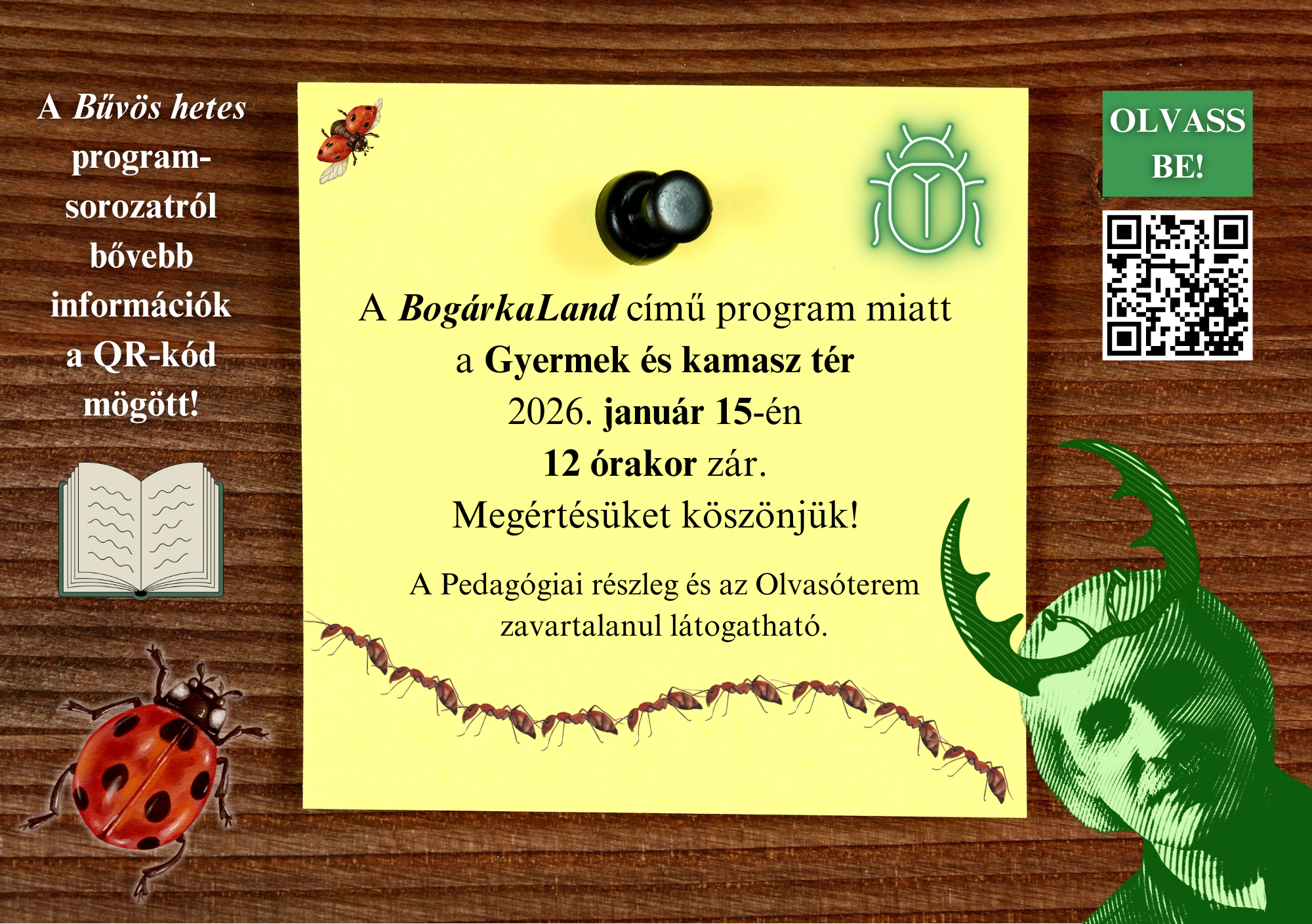 A Gyermek és kamasz tér a január 15-én, csütörtökön kezdődő Bűvös hetes című programsorozat miatt délben bezár.