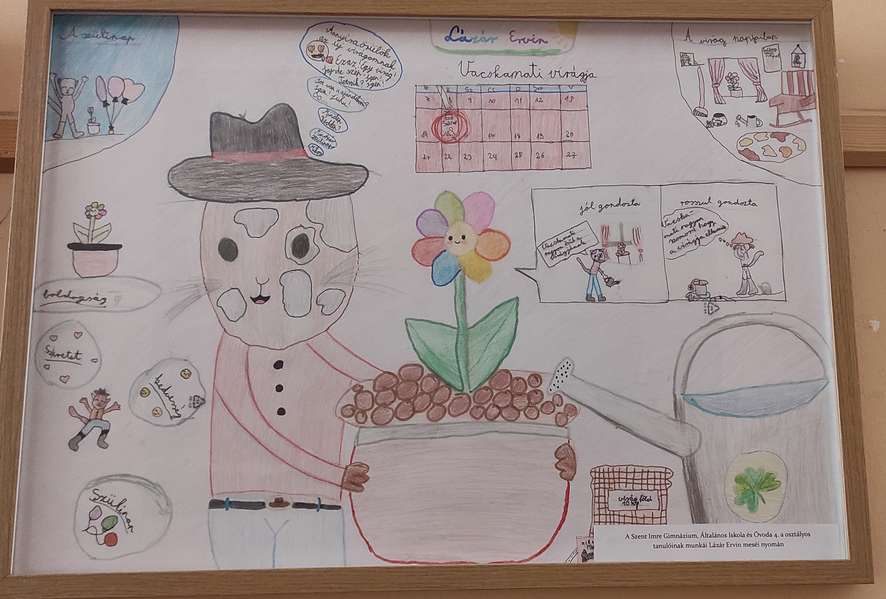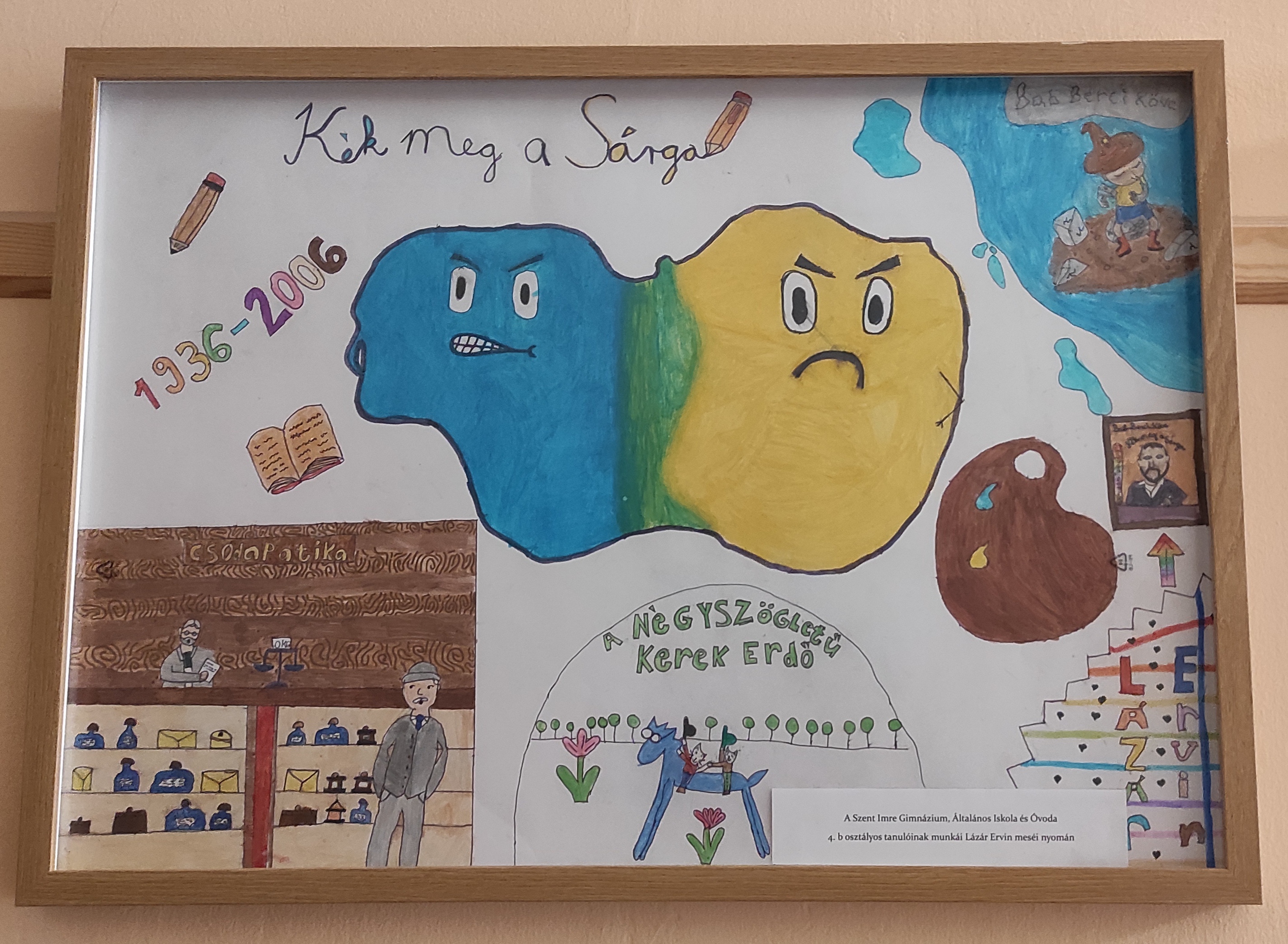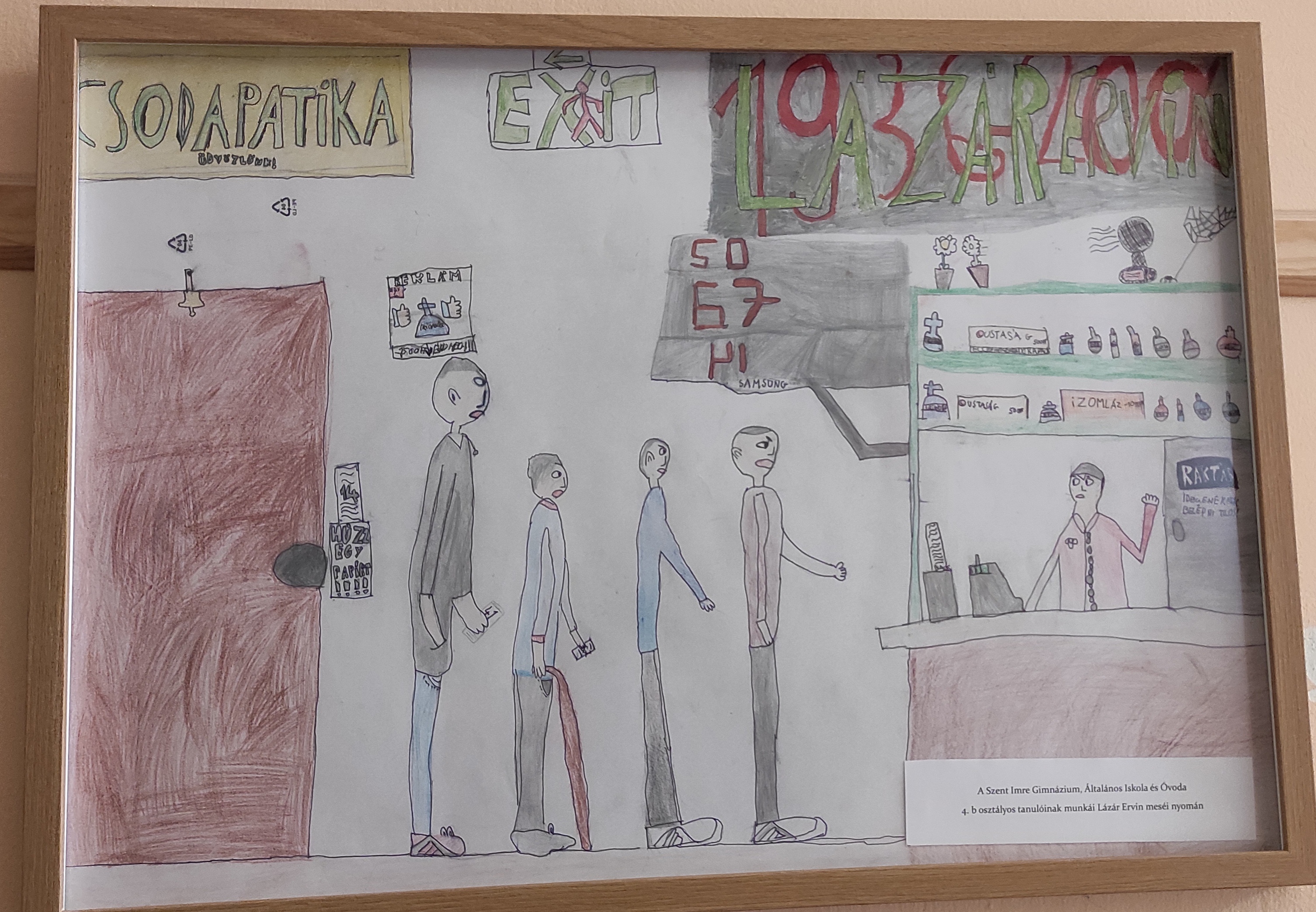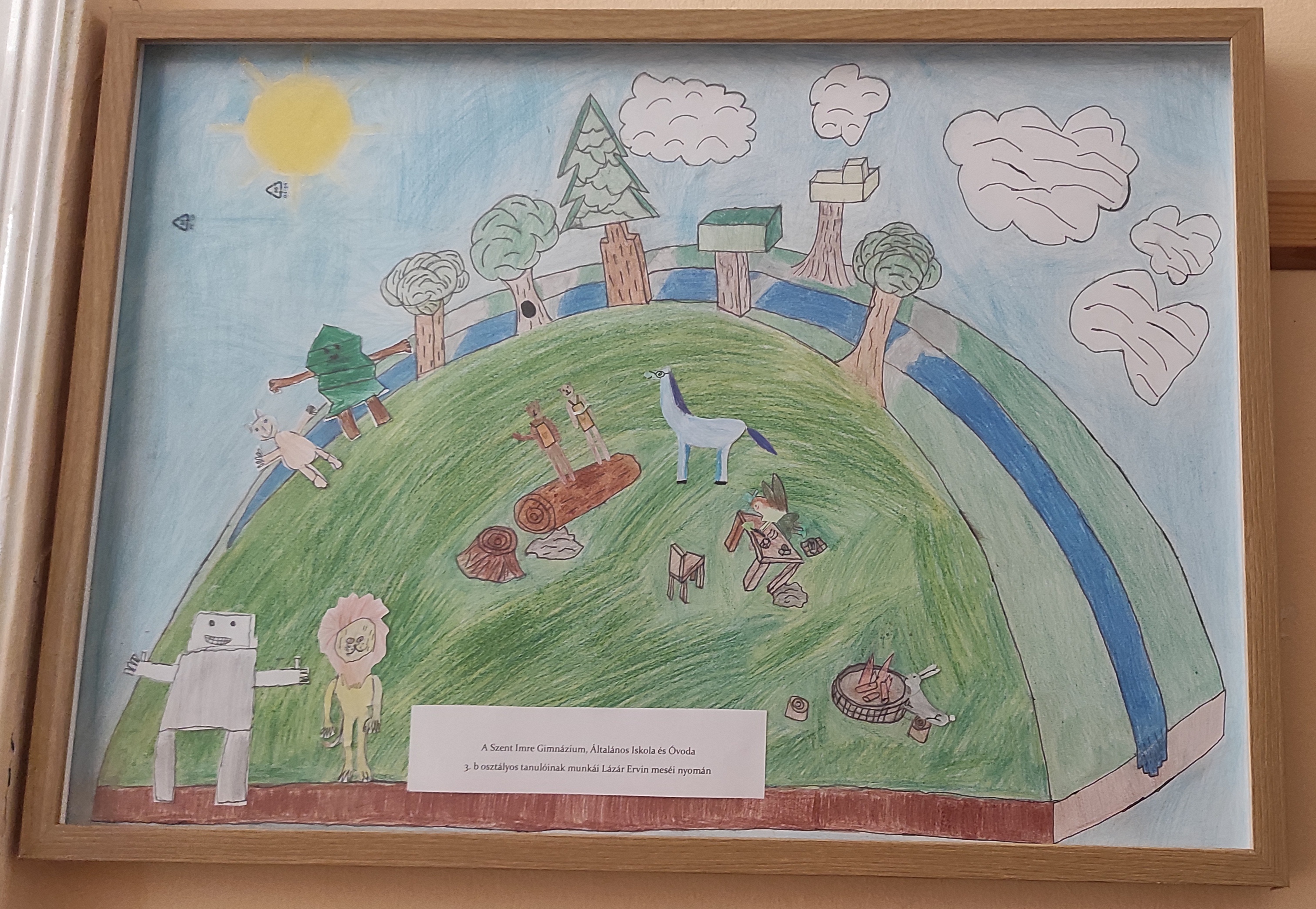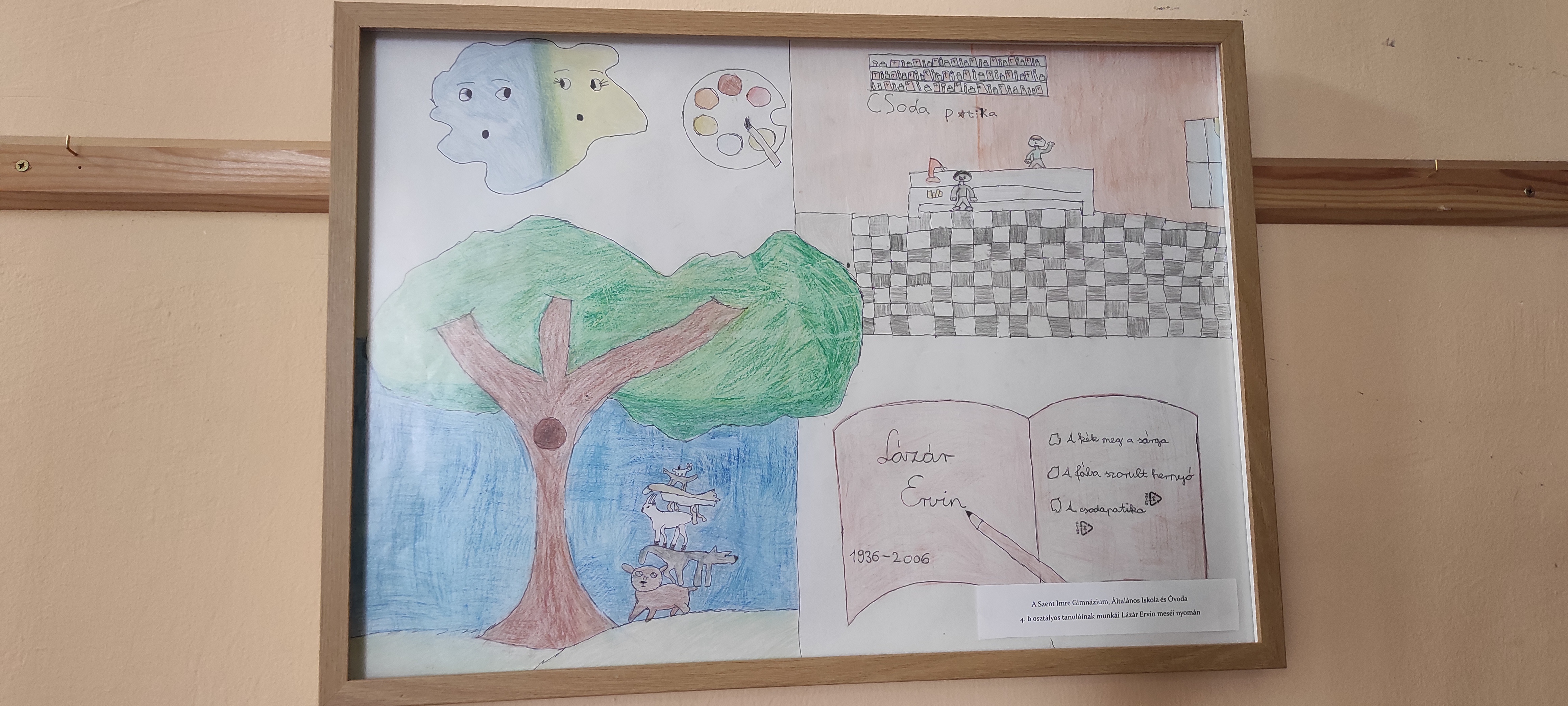 Lázár Ervin születésének 90. évfordulójára emlékezve kértünk meg hozzánk járó iskolás, óvodás csoportokat a Szent Imre Gimnázium, Általános Iskola és Óvodából, valamint a Palotavárosi Óvodából arra, hogy az író meséi által inspirálva készítsenek rajzokat a folyosónkra. Látványos művek születtek.